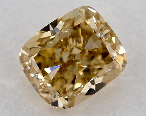 This 1.66ct cushion cut diamond, with Yellow color, VS2 clarity, very_good polish, and very_good symmetry, measures 7.03 x 6 x 4.14 and has a diamond grading report from GIA